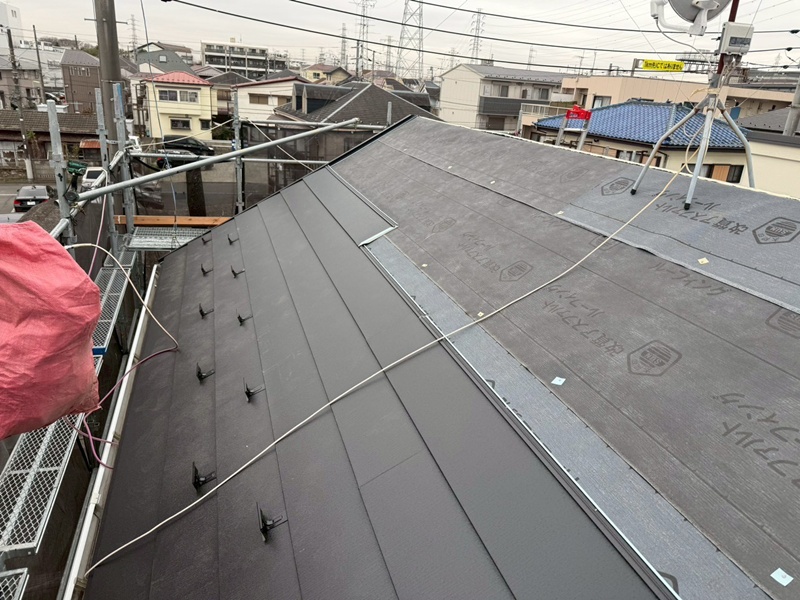 屋根は金属屋根カバー工法にて施工を行っております。