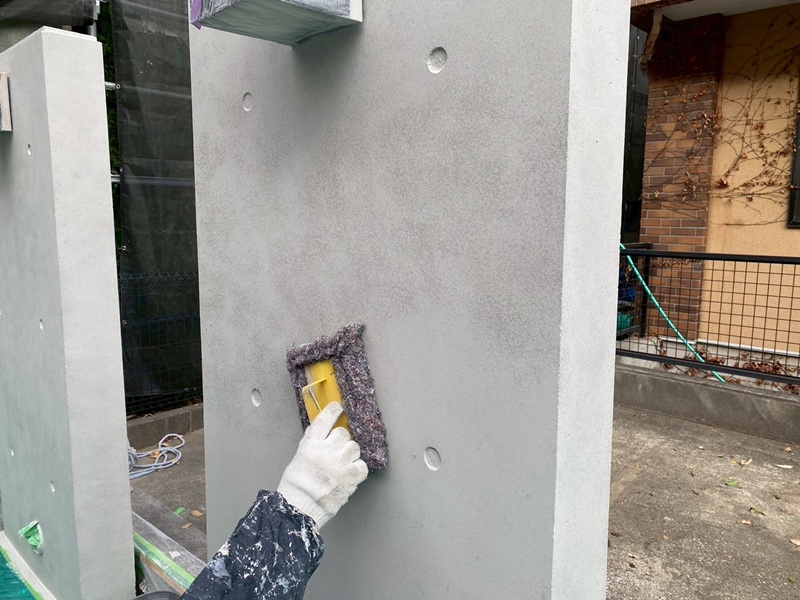 下地処理後、外壁はランデックスFC特殊工法にて仕上げを行っていきます。