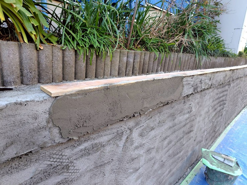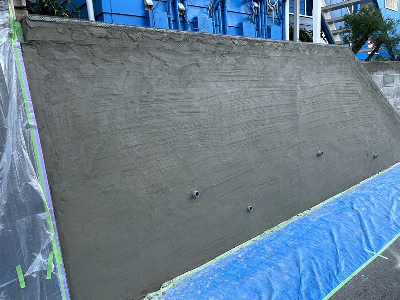 ↓ラス網取り付け後、コーナー部成形、モルタルを塗り重ねます。