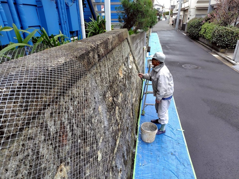 ↓洗浄工事、ハツリ、ラス網取り付けの様子
