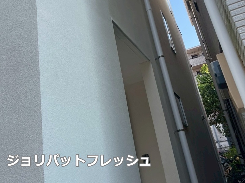 RCやモルタル外壁において「仕上げ」を行っている塗材の事を、「ジョリパット」という商品で施工されています。