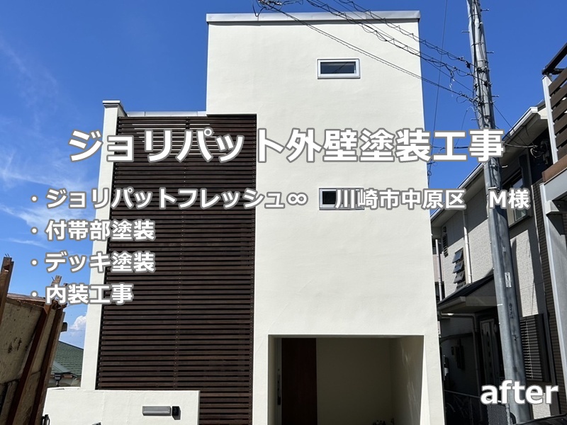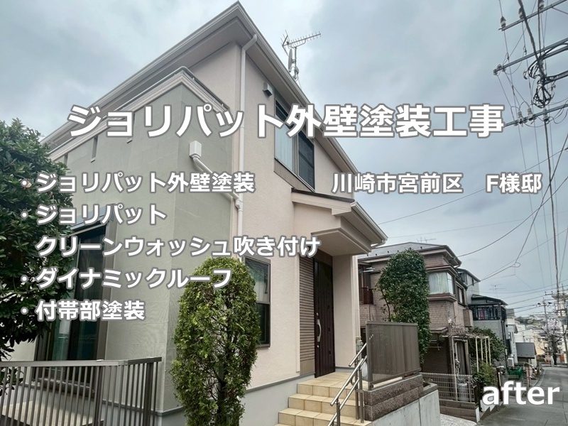 川崎市中原区のお客様より、ジョリパット外壁塗装、付帯部塗装、内壁塗装のご依頼をいただきました。