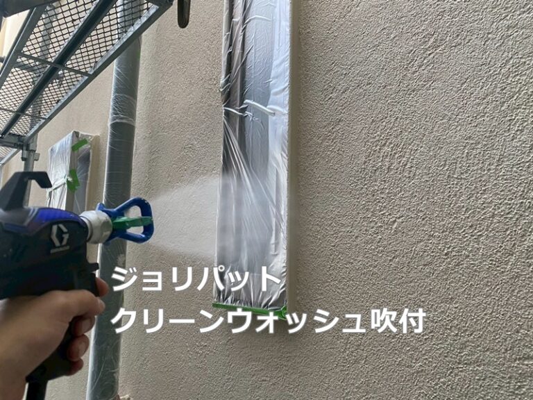 佐藤塗装店では、ジョリパット外壁の塗り替え時にジョリパットフレッシュでの塗装と合わせて、ジョリパットクリーンウォッシュ吹付の施工をおすすめしております。