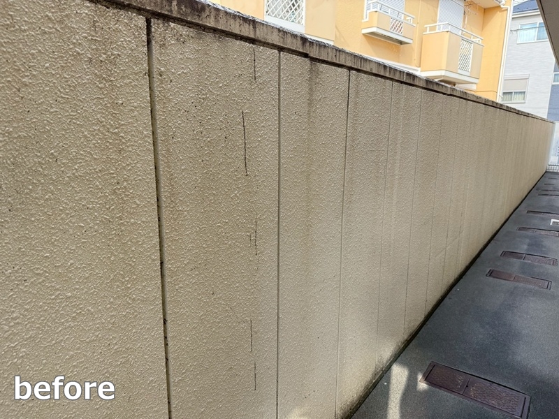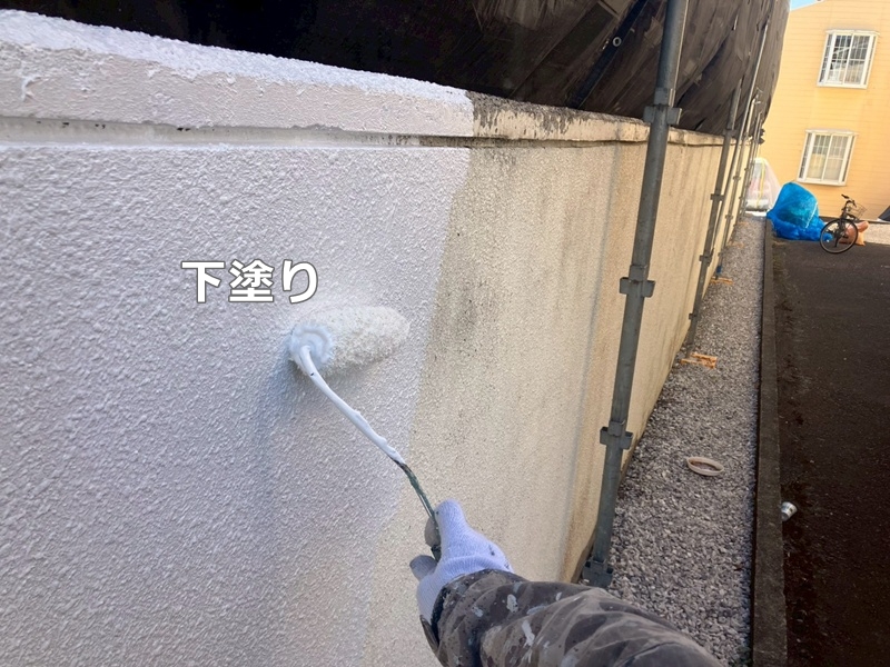 塀、廊下壁面は、ダイナミックトップにて丁寧に塗装していきます。