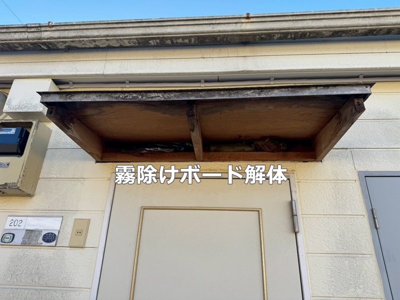 霧除けボードの劣化箇所は、既存を解体し、新規取付を行いました。