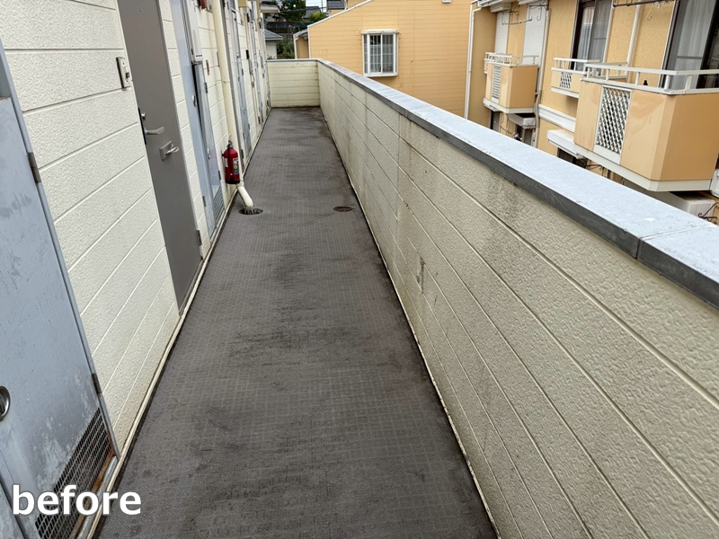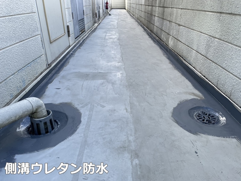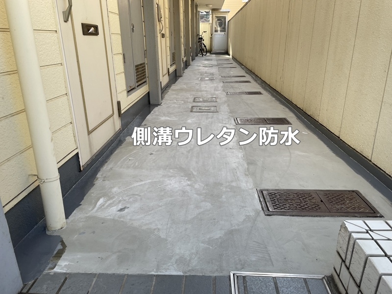 廊下は側溝ウレタン防水を行っております。