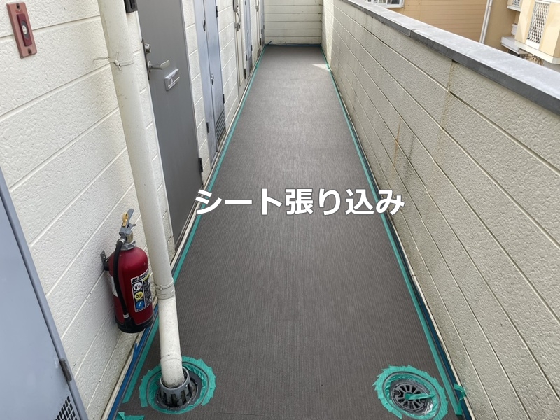 下地処理が終わり、シートを張り込みます。