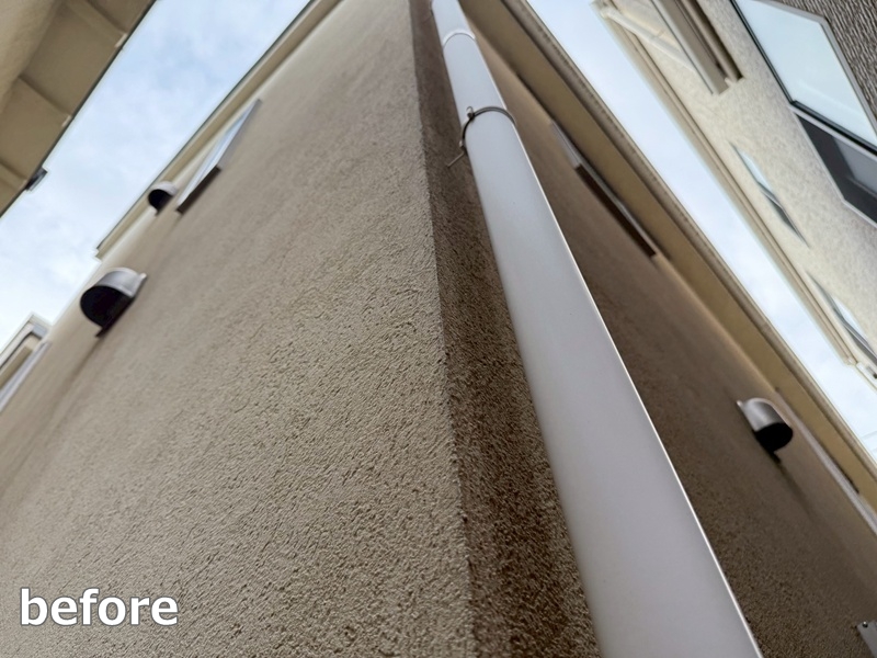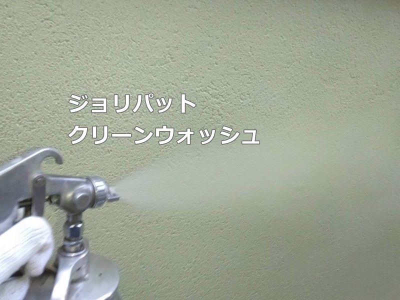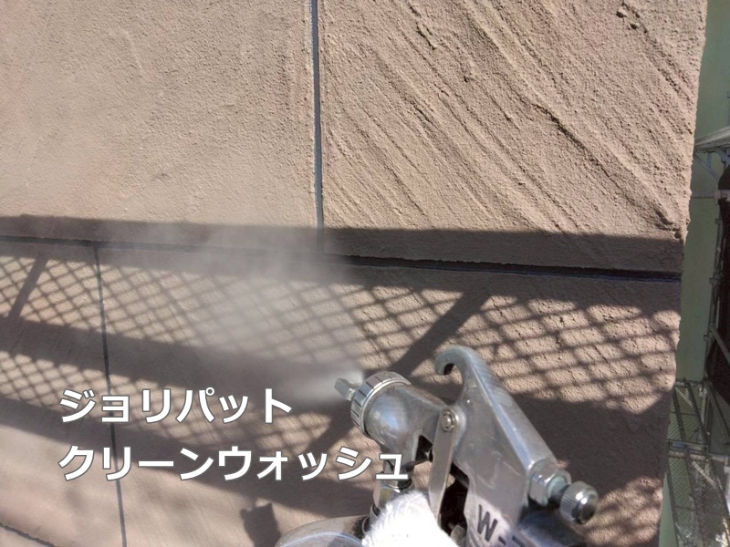 今回の外壁は、下塗り、中塗り、上塗り、ジョリパットクリーンウォッシュ吹付での仕上げとなっております。