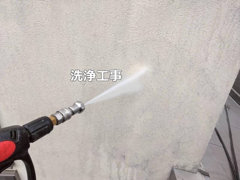 足場を設置して、洗浄工事からスタートしました!汚れをしっかり落としていきます。