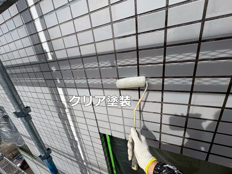 外壁は、ファイングラシィSiクリヤーにて丁寧に塗装していきます。
