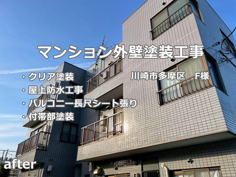 川崎市多摩区のお客様より、マンション外壁塗装工事、付帯部塗装、屋上・バルコニー防水工事などのご依頼をいただきました。