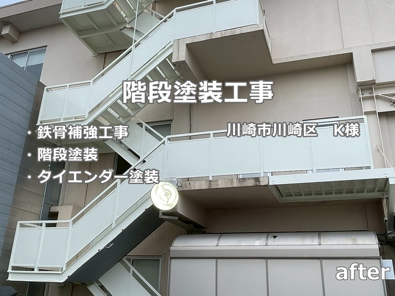 川崎市川崎区のお客様より、階段2箇所の塗装工事のご相談をいただきました。